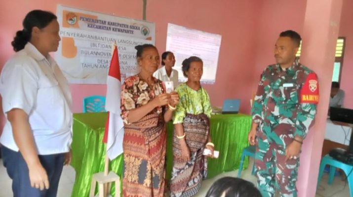 Gentra.co.id Bali – NTT – SIKKA. Babinsa Koramil 1603-04/Kewapante Kodim 1603/Sikka Kopda Riqap Sulaiman dampingi penyerahan Bantuan Langsung Tunai (BLT) Dana Desa kepada masyarakat Desa Seu Sina bertempat di Aula Kantor Desa Seu sina, Kec. Kewapante, Kab. Sikka, Sabtu 21/12/24.
