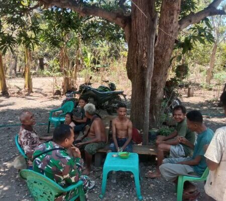NTT-KUPANG, – Dalam upaya mempererat hubungan dengan masyarakat di wilayah binaannya, Babinsa Manubelon Koramil 1604-03/Naikliu, Kopka Imanuel Banoet, melaksanakan kegiatan Komunikasi Sosial (Komsos) di rumah Bapak Kristian Neno, salah satu tokoh masyarakat di RT 11 RW 06 Dusun 03 Desa Manubelon, Kecamatan Amfoang Barat Daya, Kabupaten Kupang. Kegiatan ini merupakan bagian dari tugas pembinaan teritorial yang rutin dilakukan Babinsa untuk menjalin silaturahmi dan kebersamaan dengan warga. Senin (27/10/2025).