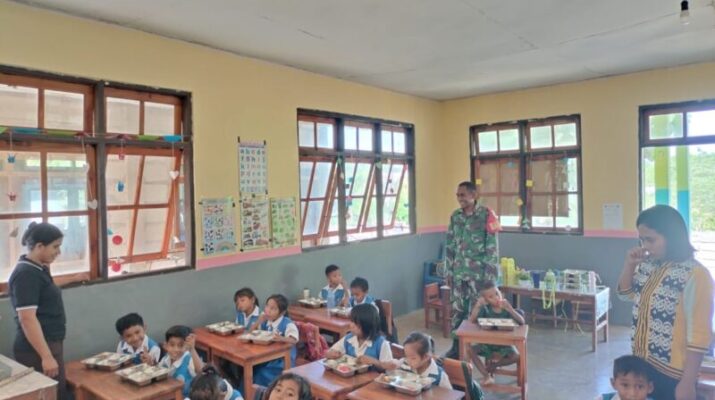 Rote Ndao, Kamis 02 Oktober 2025 – Babinsa Koramil 1627-02/Pantai Baru, Koptu Mesak Foeh, melaksanakan pendampingan kegiatan pemberian makanan sehat bergizi kepada siswa-siswi TK, Paud, SD, SMP, dan SMA di wilayah Kecamatan Pantai Baru.