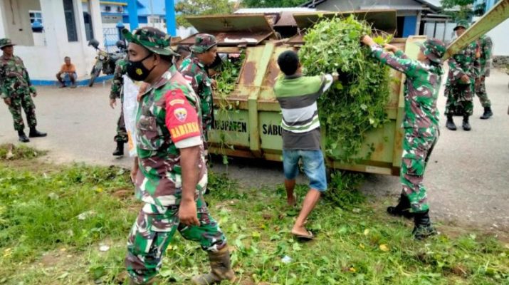 Gentra.co.id NTT – NTT – Sabu Raijua – Koramil 1604-08/Sabu Raijua yang dipimpin oleh Danramil Kapten Inf Daniel Boimau menggelar kegiatan Karya Bakti pemungutan sampah organik dan non-organik di wilayah Kelurahan Mebba, Kecamatan Sabu Barat, Kabupaten Sabu Raijua. Kegiatan ini berlangsung di RT 13, tepatnya di depan pintu masuk ke Pelabuhan Seba, pada Sabtu, (18/01/2025).