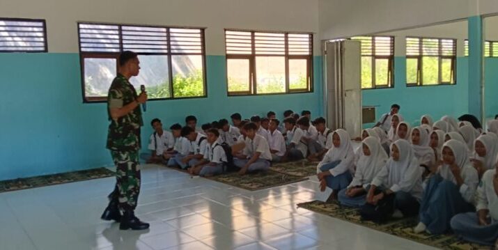 NTB — Sumbawa, Babinsa Desa Sebewe, Sertu Edi Supianto, anggota Koramil 1607-12/Moyo Hilir, memberikan sosialisasi kepada siswa-siswi SMAN 1 Moyo Utara terkait profesi Tentara Nasional Indonesia (TNI) serta tahapan rekrutmen calon Bintara (Caba) dan calon Tamtama (Cata), pada Rabu (23/04/2025).