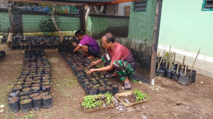Hal tersebut kembali terlihat saat personel Koramil Nusa Penida dipimpin langsung Wadanramil Kapten Inf Gede Putra Yadnya melaksanakan gotong royong penanaman urban farming di Makoramil, Selasa ( 24/06/25 ).