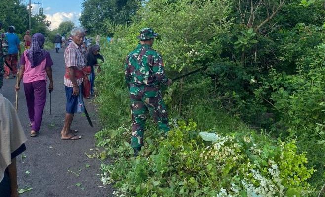 Koramil 1624 – 07/NagawutungKarya Bakti Bersama Masyarakat Bersihkan Bahu Jalan