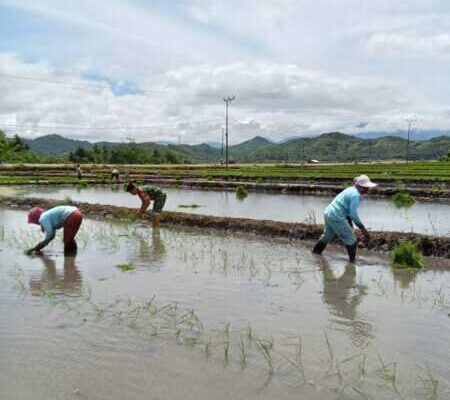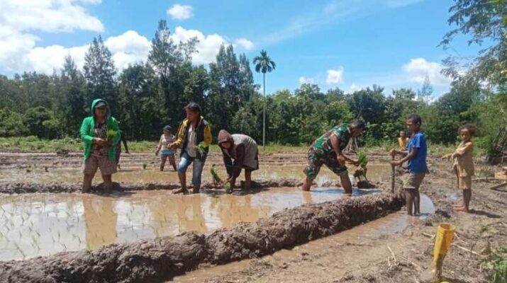 Dukung Ketahanan Pangan Nasional, Babinsa Koramil 1621-03/Mollo Utara Turun Langsung Ke Sawah Bantu Petani Tanam Padi