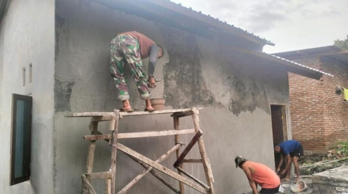 Sasaran RTLH Satgas TMMD Ke-123 Masuk Tahap Pensempurnaan dengan Pengacian Pada Pleseter Dinding