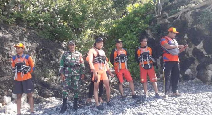 Babinsa Desa Padangbai Koramil 1623-05/Manggis Serka I Made Sudana bersama tim Sar gabungan laksanakan pencarian orang hilang, di Pesisir Pantai Mimba Desa Padangbai, Kec.
