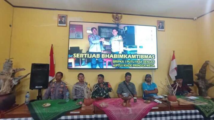 Gentra.co.id –Babinsa Desa Bugbug Koramil 1623-01/Karangasem Koptu Gede Mudana menghadiri acara serah terima jabatan Bhabinkamtibmas Desa Bugbug, di Aula Desa Adat Bugbug, Desa Bugbug,