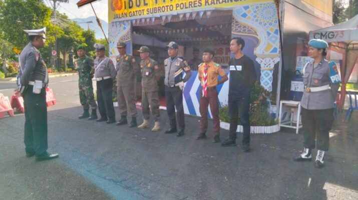 Personel Kodim 1623/Karangasem bersama instansi terkait amankan arus mudik lebaran.