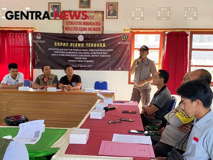 rapat pleno terbuka rekapitulasi Daftar Pemilih Hasil Pemutakhiran (DPHP) oleh Panitia pendaftaran Pemilih (Pantarlih) di Desa Subamia, Kecamatan/kabupaten Tabanan.