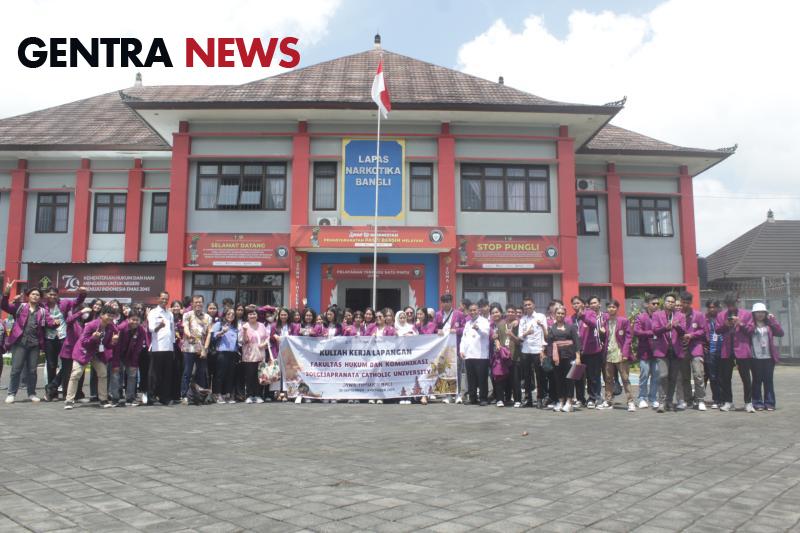 Gentra News Bali-Bangli – Lembaga Pemasyarakatan (Lapas) Narkotika Kelas IIA Bangli Kantor Wilayah Kemenkumham Bali menerima rombongan mahasiswa dari Fakultas Hukum dan Komunikasi Universitas Khatolik Soegijapranata Semarang dalam rangka kuliah kerja lapangan pada Rabu, (2/10). Kedatangan mahasiswa program studi hukum dan komunikasi ini untuk mengetahui praktik pembinaan narapidana yang diselaraskan dengan materi perkuliahan yang selama ini telah diperoleh.