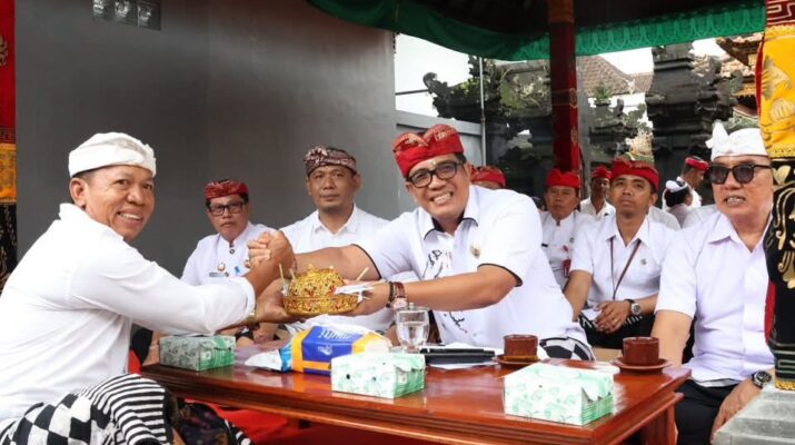 Tabanan PR – Bupati Tabanan, Dr. I Komang Gede Sanjaya, S.E., M.M., menghadiri Uleman Karya Mupuk Pedagingan lan Mepedudusan di Merajan Kawitan I Gusti Ngurah Keladian Perti Sentana Sira Arya Belog, Desa Kaba-Kaba, Kecamatan Kediri, Tabanan, Selasa (4/11). Turut hadir perwakilan Anggota DPR RI, Anggota DPRD Provinsi Bali, Anggota DPRD Kabupaten Tabanan, serta Pimpinan Perangkat daerah terkait, Perbekel, Bendesa Adat serta krama pengempon pura.