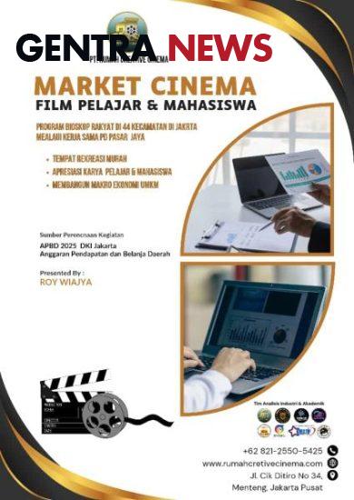 Gentra News, Jakarta– Market Cinema adalah program baru yang akan di buat oleh Pemerintah DKI Jakarta yang bertujuan untuk mengembangkan unsur-unsur kreativitas film karya pelajar dan Mahasiswa.
