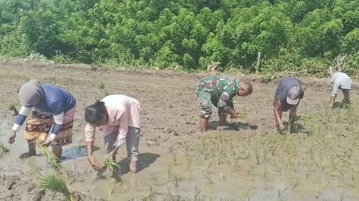 Dalam kegiatan tersebut sebagai sebagai aparat komando kewilayahan, Serka Elfridus M Lau sebagai Babinsa di wilayah itu ikut turun ke sawah membantu proses penanaman bibit padi milik Bapak Hubertus Berek salah seorang petani di wilayah Desa binaannya tersebut, Senin (13/1/2025).
