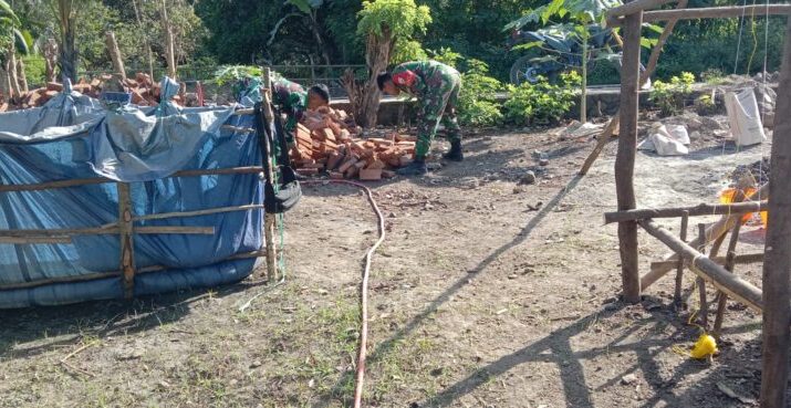 Gentra.co.id –Flotim- Guna terciptanya kemanunggalan TNI bersama rakyat, Babinsa Koramil 1624-06/Wulanggitang, Kopda Sapiadi dan Praka L.Sopiyan melaksanakan karya bakti membantu pembangunan rumah milik Bapak Yohanes di Desa Adabang, Kecamatan Titehen, Kabupaten Flores Timur. Sabtu (26/04/2025).