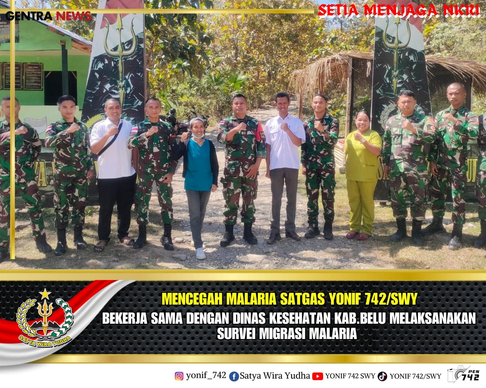 Gentra News Belu, NTT – Mendukung Dinas Kesehatan dalam rangka mencegah penyebaran penyakit Malaria di Perbatasan RI-RDTL, Satgas Yonif 742/SWY bekerja sama dengan Dinas Kesehatan Kabupaten Belu melaksanakan kegiatan Survey Migrasi Malaria. Kegiatan pemeriksaan malaria dilakukan dijajaran Pos Satgas Yonif 742/SWY salah satunya di Pos Delomil yang dipimpin Letda Inf Arfian Yudha Baktian, S.Tr (Han) beserta 11 orang anggotanya. Rabu (17/7/2024)