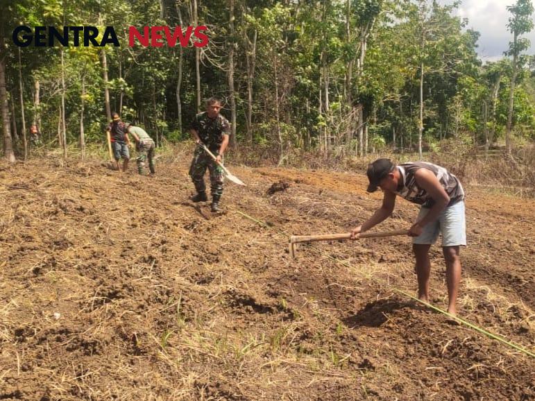 Gentra News NTT – SUMBA BARAT, Mendukung ketahanan pangan diwilayah anggota Koramil 01/Loli Kodim 1613/Sumba Barat berdayakan lahan kosong untuk pertanian yang bertempat di Kel. Kodaka Kec. Loli Kab. Sumba Barat, Selasa (30/7/2024).