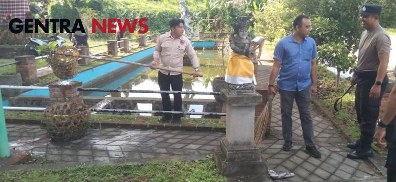 Kegiatan Kurvei Pembersihan Kolam Ikan Tangguh Dewata di Jln. Pura Hyang Tibah Desa Batuan Kaler Kecamatan Sukawati dipimpin langsung oleh Kapolsek Sukawati Kompol I Ketut Suaka Purnawasa, S.H. dan 50 personil Polsek Sukawati didampingi Perbekel Batuan Kaler I Wayan Suarma, S.E. dan kelian dinas I Wayan Eka Sentana beserta masyarakat Desa Batuan Kaler 5 orang.