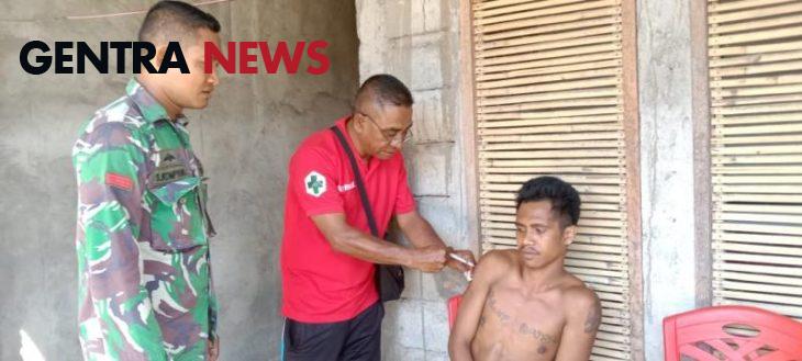 NTT-SIKKA Babinsa Koramil 1603-01/Alok, Kodim 1603/Sikka Kopda Kompiang bersama tim kesehatan dari Puskesmas Kelurahan Kota Baru, melakukan pendampingan dalam penyuntikan kepada Orang Dalam Gangguan Jiwa(ODGJ) di Kelurahan Kota Baru, Kab. Sikka, Selasa(24/09/2024).