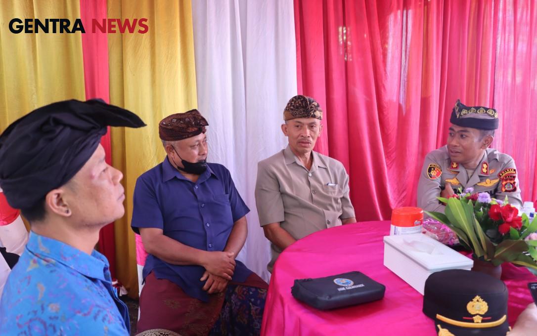 Gentra News Bali – Polda Bali – Polres Karangasem – Kapolres Karangasem, AKBP I Nengah Sadiarta, S.I.K., S.H., M.K.P., melaksanakan kegiatan Cooling System dengan tokoh masyarakat Desa Adat Rendang pada Kamis (22/8/2024). Kegiatan ini bertujuan untuk menjaga keamanan dan ketertiban masyarakat (Harkamtibmas) yang kondusif, terutama menjelang Pilkada Serentak Tahun 2024.