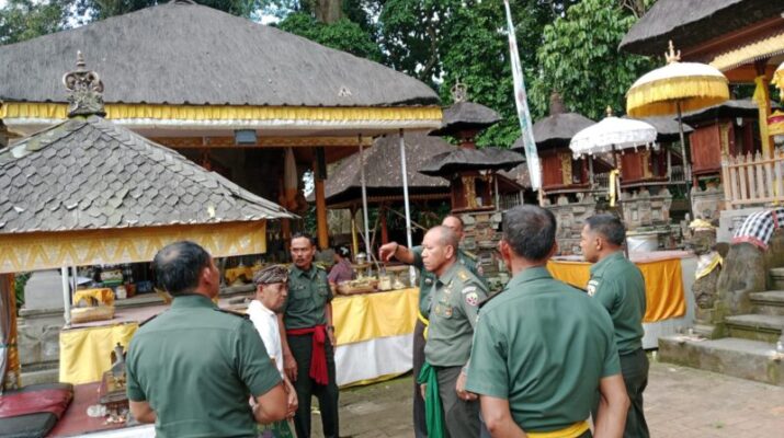 Gentra.co.id –Gianyar – Menjelang pelaksanaan tradisi penjamasan Pataka Kodam IX/Udayana, Dandim 1616/Gianyar Letkol Cpn I Gede Winarsa, S.H., M.Han., mendampingi kunjungan kerja Kabintaljarahdam IX/Udayana Kolonel Inf Nyoman Sumitra beserta rombongan dalam rangka koordinasi teknis kegiatan yang akan dilaksanakan di dua lokasi, yaitu Puri Ageng Blahbatuh dan Pura Durga Kutri, Desa Buruan, Kecamatan Blahbatuh, Kabupaten Gianyar, pada Senin (5/5/2025).