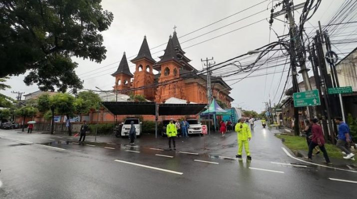 Gentra.co.id Bali – Denpasar, Personil Satlantas Polresta Denpasar melaksanakan pengaturan dan penjagaan atensi kegiatan Jamaat yang melaksanakan Ibadah Hari Natal ke Gereja di wilayah Denpasar, Rabu (25/12).