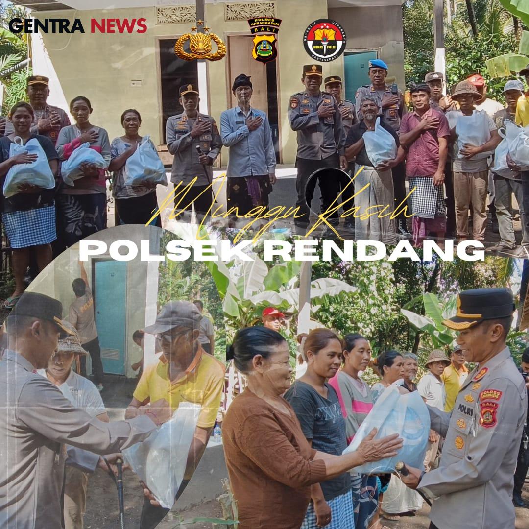 Polsek Rendang melaksanakan program Minggu Kasih dengan melakukan kerja bakti di lokasi Bedah rumah I Komang Jambu Nada Dusun Pedukuhan Desa Rendang dan menyerahkan bantuan sosial kepada warga masyarakat kurang mampu , minggu (7/7)