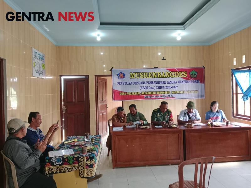 Gentra News Bali – Babinsa Peltu Gede Sugiarta Pucaksari menghadiri undangan kegiatan Rapat Musrenbangdes perubahan RPJM Des tahun 2020- 2025 dan RKP tahun 2025 yang bertempat di Aula Kantor desa , Desa Pucaksari, Kec. Busungbiu, Kab.Buleleng