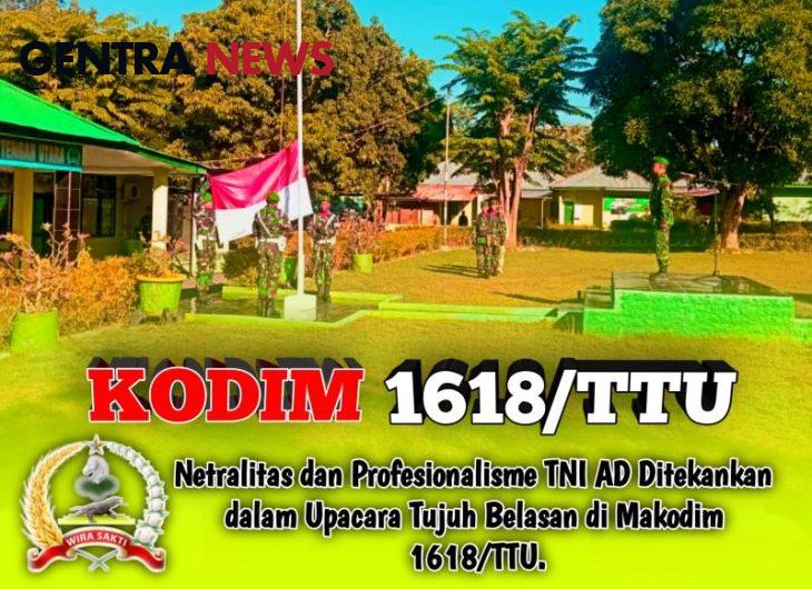 Gentra News NTT-KEFAMENANU, Senin, 18 November 2024, Bertempat di Lapangan Upacara Makodim 1618/TTU, Jl. A. Yani, Kelurahan Kefamenanu Selatan, Kecamatan Kota Kefamenanu, Kabupaten TTU, telah dilaksanakan Upacara Tujuh Belasan yang dipimpin oleh Kasdim 1618/TTU, Kapten Inf Nur Marsudi, sebagai Inspektur Upacara. Kegiatan tersebut diikuti oleh seluruh prajurit dan ASN Kodim 1618/TTU.