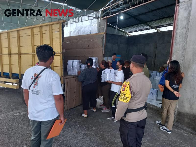 Gentra News Bali – GIANYAR-Pengamanan distribusi logistik Pilkada 2024 di Kabupaten Gianyar berlangsung dengan lancar. Kegiatan ini dilaksanakan di Gudang Logistik KPU Kabupaten Gianyar yang terletak di Jalan Raya Buruan Blahbatuh, Kecamatan Blahbatuh. Pengamanan distribusi logistik tersebut dilakukan oleh personel yang tergabung dalam Operasi Mantap Praja Agung 2024, dengan fokus pada pengamanan Gudang Logistik serta jalur distribusi menuju desa-desa di seluruh Kabupaten Gianyar/Sabtu, 23 November 2024.