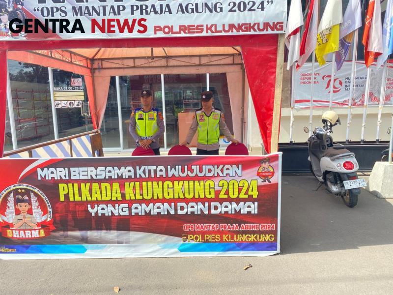 Gentra News Bali – Operasi Mantap Praja Agung 2024 Tahap Kampanye, Polres Klungkung telah memploting personel untuk melaksanakan kegiatan pengamanan pada kantor penyelanggara Pemilu seperti Kantor KPU yang berlokasi di Jalan Baypass Ida Bagus Mantra, Desa Negari, Kecamatan Banjarangkan (19/10/2024).