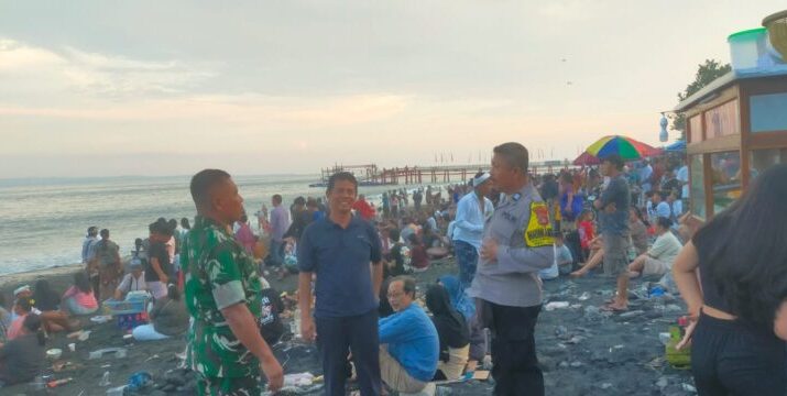 Ditengah padatnya warga, terlihat pula aparat keamanan baik Babinsa, Bhabinkamtibmas, anggota Polsek dan Linmas tampak berjaga sembari melaksanakan patroli keliling dikawasan pantai tersebut.