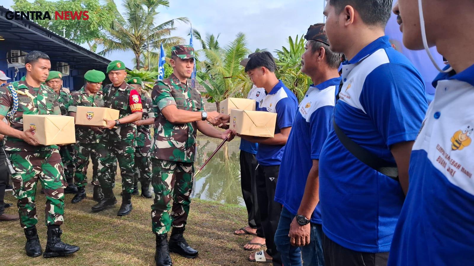 Di akhir acara panen madu Pangdam berkesempatan memberikan bingkisan Sembako kepada anggota Kelompok Tani Lebah Madu Buana Sari dan menyaksikan proses produksi lebah madu bersama rombongan.
