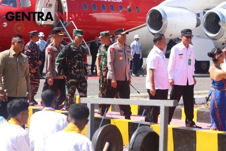 Rangkaian kegiatan Presiden Jokowi diawali dengan penyambutan di Bandara Mali oleh Pj. Bupati Alor Dr. Drs. Zeth Sony Libing, M.Si, Asops Kodam IX/Udayana, Kasrem 161/Wira Sakti Kolonel Inf Riko Haryanto, S.I.P, Dandim 1622/Alor Letkol Inf Amir Syarifudin, SH, Danyon 743/PSY Letkol Inf Hery Mujiono, Kapolres Alor AKBP Supriyadi Rahman, S.I.K., MM, serta pejabat sipil lainnya, Kamis (3/10/2024).