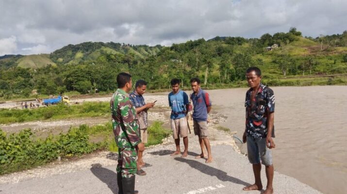 SUMBA BARAT – Babinsa Koramil 02/Walakaka Kodim 1613/Sumba Barat, Sertu Alifin, melaksanakan pemantauan kondisi jalan yang terendam banjir akibat intensitas hujan tinggi di wilayah Desa Kabukarudi, Kecamatan Lamboya, Kabupaten Sumba Barat, pada Sabtu (29/11/2025).
