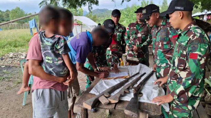 Gentra.co.id Belu – Satgas Yonif 741/GN Pos Fatubesi kembali menerima satu pucuk senjata api springfield dan dua senjata rakitan yang diserahkan oleh warga di Desa Takirin, Kecamatan TasifetoTimur, Kabupaten Belu. Senin (14/04/2025)