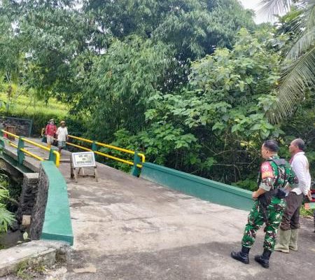 Peninjauan ini dilakukan untuk melaksanakan pengecekan dan memastikan secara langsung kondisi jembatan, karena muali kemarin guyuran hujan terus melanda wilayah ini,”ucap Sertu Putu.