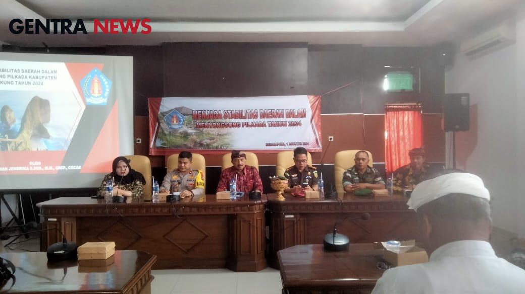 Gentra News Bali-Klungkung,- Badan Kesatuan bangsa Dan Politik ( Kesbangpol ) Kabupaten Klungkung menyelenggarakan kegiatan Rapat Sosialisasi Pelaksanaan Pembinaan dan Pengawasan Ketentraman dan Ketertiban Masyarakat serta Stabilitas Daerah Menjelang Pilkada Tahun 2024, Kamis ( 01/08/24 ).