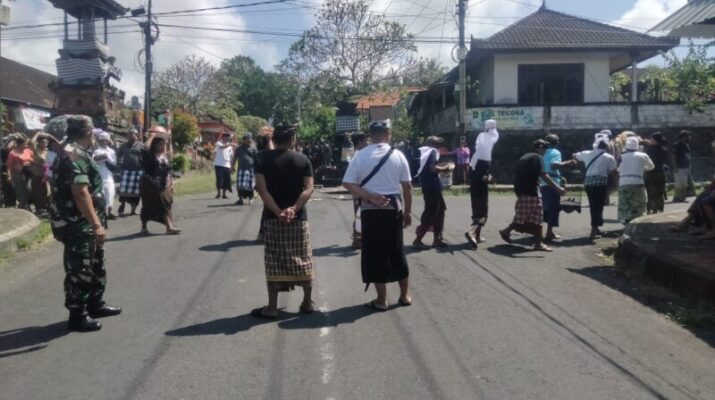 Pastikan Berjalan Aman Dan Lancar, Babinsa Semarapura Kaja Amankan Upacara Keagamaan