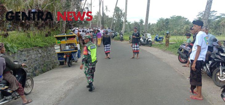 Babinsa Desa Susut Sertu I Nyoman Suharta bersama para Pecalang Desa Adat memantau dan melaksanakan pengamanan serta mengatur lalu lintas agar tidak terjadi kemacetan.