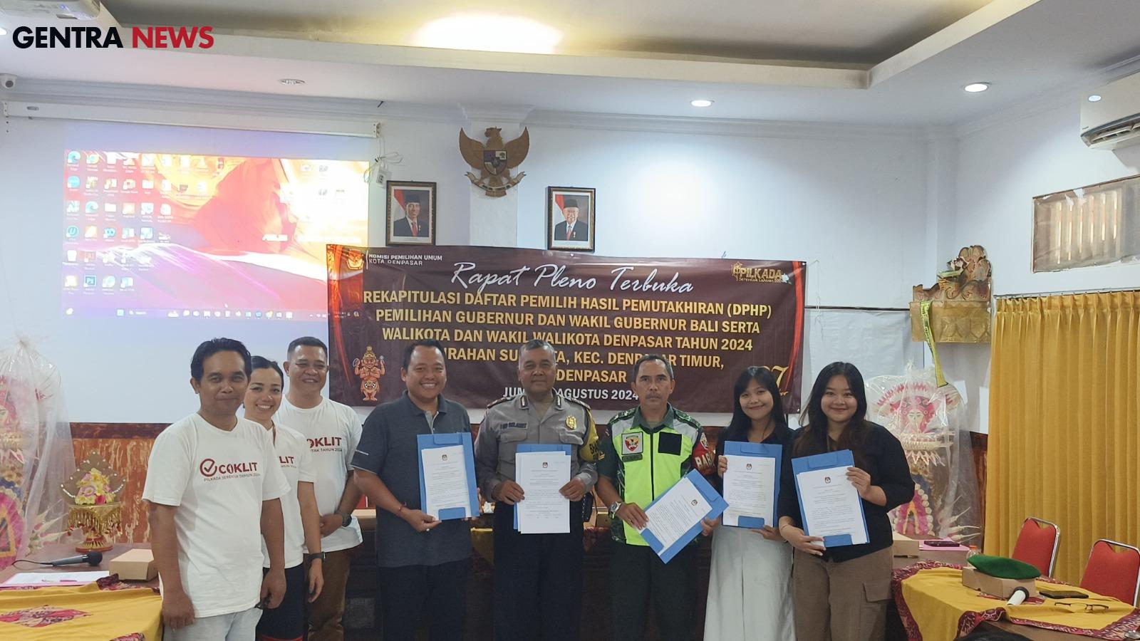 Gentra News Bali – DENPASAR, Babinsa Koramil 1611-01/Dentim Kodim 1611/Badung Sertu Ketut Lopi bersinergi dengan Bhabinkamtibmas menghadiri serta mengamankan pelaksanaan rapat pleno terbuka rekapitulasi daftar pemilih hasil perbaikan (DPHP) Denpasar tingkat Desa Sumerta Pemilu 2024 yang bertempat di Ruang Pertemuan Kantor Kelurahan Sumerta,Jln WR Supratman No 111 Denpasar Kota Denpasar. Jum’at (02/08/24).