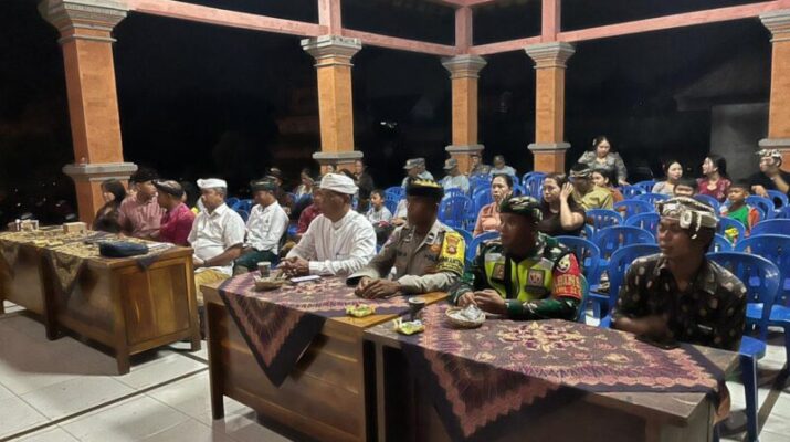 Klungkung,- Babinsa Nyanglan Serda Kadek Dwi Awan bersama Bhabinkamtibmas menghadiri sekaligus melaksanakan pengamanan HUT STT Yowana Dharma Bhakti ke-41 di Balai Banjar Desa Nyanglan, Kecamatan Banjarangkan, Kabupaten Klungkung, Rabu ( 31/12/25 ).