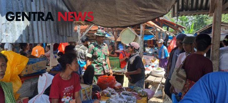 Babinsa Serda Junus Ratu mengatakan,memantau aktifitas di pasar ini salah satu bagian dari pembinaan teritorial dalam menciptakan situasi aman dan kondusif kepada warga pada saat melakukan transaksi jual beli.