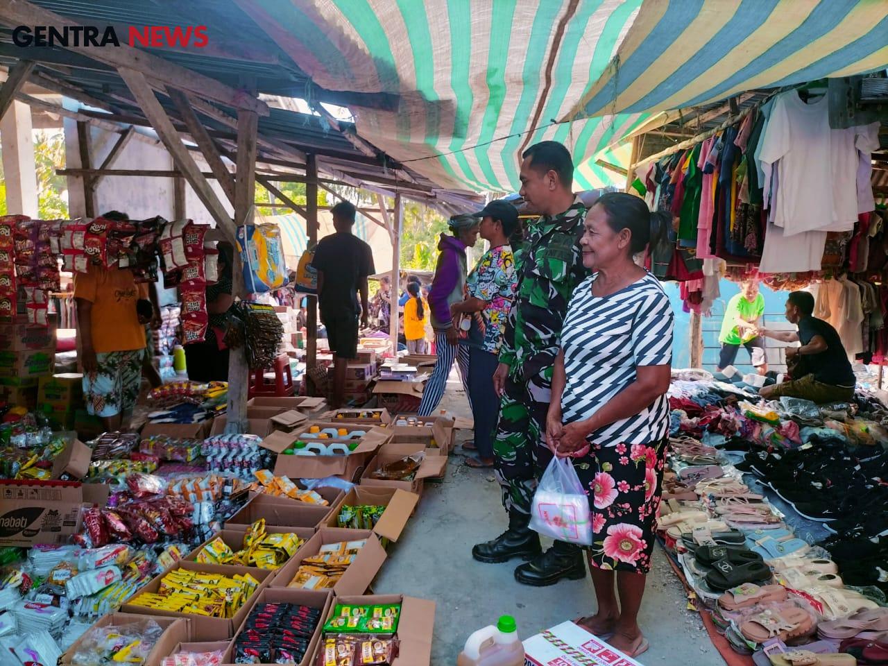 Gentra News NTT – Rote Ndao – Dalam upaya memberikan rasa aman dan nyaman kepada warga yang sedang menjalankan aktifitas di pasar tradisional di Desa Kuli Aisele Kecamatan Lobalain Kabupaten Rote Ndao. Babinsa Kodim 1627-01/Ba’a Koptu Alis Sinlae pantau aktifitas pasar dan menghimbau untuk menjaga kebersihan pasar yang berada di wilayah binaan.Jumat(19/07/24)
