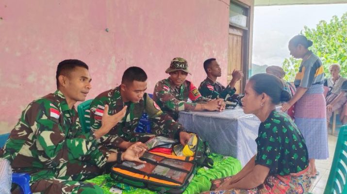 Gentra News NTT – Belu, Pos Fohululik Satgas Yonif 741/GN berikan pelayanan kesehatan dan pembagian bubur kacang hijau gratis kepada masyarakat di sekitaran Pos Fohululik Desa Deblulik, Kecamatan Lakmanen Selatan, Kabupaten Belu. Kamis (18/12/2024).