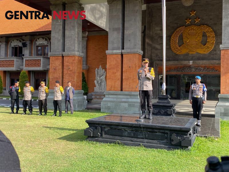 Karendalops Operasi Mantap Brata Polda Bali Kombes Pol Soelistijono S.I.K., M.H., memimpin apel gelar pasukan dalam rangka siaga dan pengamanan pelantikan Presiden-Wapres di Mako Polda Bali.