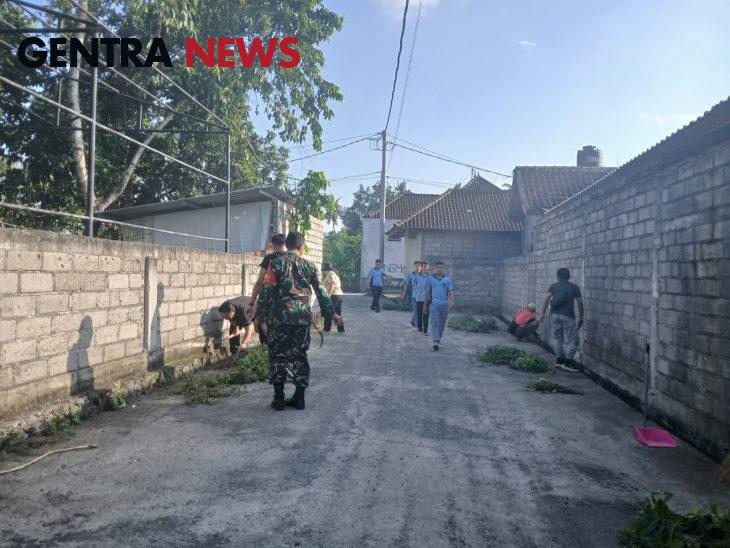 Gentra News Bali – Gianyar – Blahbatuh, Babinsa Bona Koramil 1616-04/Blahbatuh Serda I Nyoman Widastra bersama Staf Desa Bona dan Siswa Sekolah SMK Negeri 1 Gianyar melaksanakan kegiatan bhakti sosial gotong royong pembersihan di seputaran TPS3R Bona Asri dan Puspa Aman Desa Bona. Kamis (18/7/2024)