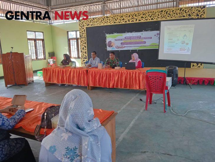 Camat Moyo Utara, Bapak Syaihuddin, juga memberikan sambutannya. Beliau menjelaskan bahwa kegiatan Pekan Imunisasi Nasional ini dilaksanakan karena adanya situasi kejadian luar biasa, sehingga diperlukan imunisasi Vaksin Polio untuk anak-anak. “Ini adalah hak anak untuk sehat. Kita harus bekerja sama dengan baik agar pelaksanaan kegiatan Imunisasi Vaksin Polio ini berjalan dengan baik, aman, dan lancar,” tegasnya.