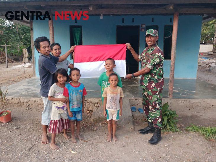 Gentra News NTT – Sabu Raijua – Pgs. Danramil 1604-08/Sabu Raijua, Kapten Inf Daniel Boimau, bersama Praka Yosan dan anggota lainnya melaksanakan kegiatan pembagian Bendera Merah Putih kepada masyarakat di wilayah Sabu Raijua. Kegiatan ini bertujuan untuk mendukung program Pemerintah Daerah dalam menyemarakkan perayaan Hari Kemerdekaan Indonesia yang ke-79. Kamis (08/08/2024).