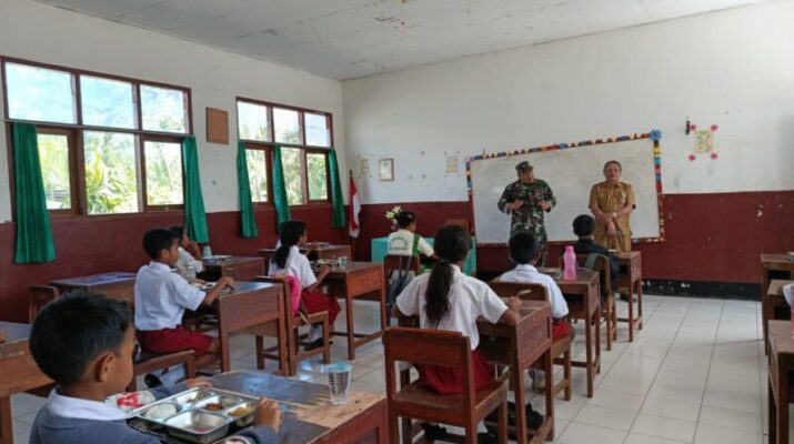Pada hari ini, Babinsa Kelurahan Kampung Baru, Peltu Ended Sutisna, melaksanakan monitoring pembagian makan bergizi gratis (MBG) bagi siswa-siswi SD Inpres Soe di Kampung Maleset, Kelurahan Kampung Baru, Kecamatan Kota Soe, Kabupaten Timor Tengah Selatan. Pembagian makan bergizi gratis ini diberikan kepada 172 siswa, dengan sajian menu yang terdiri dari nasi, tahu, ayam goreng balik kecap, sayur daun sawi wortel, dan buah semangka.