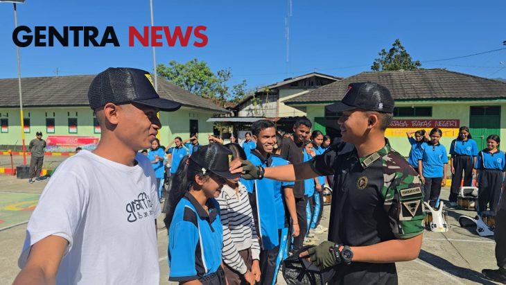PEMBAGIAN TOPI KEPADA TIM DRUMBAND SISWA SMA MUTIS EBAN OLEH SATGAS YONKAV 6/NAGA KARIMATA